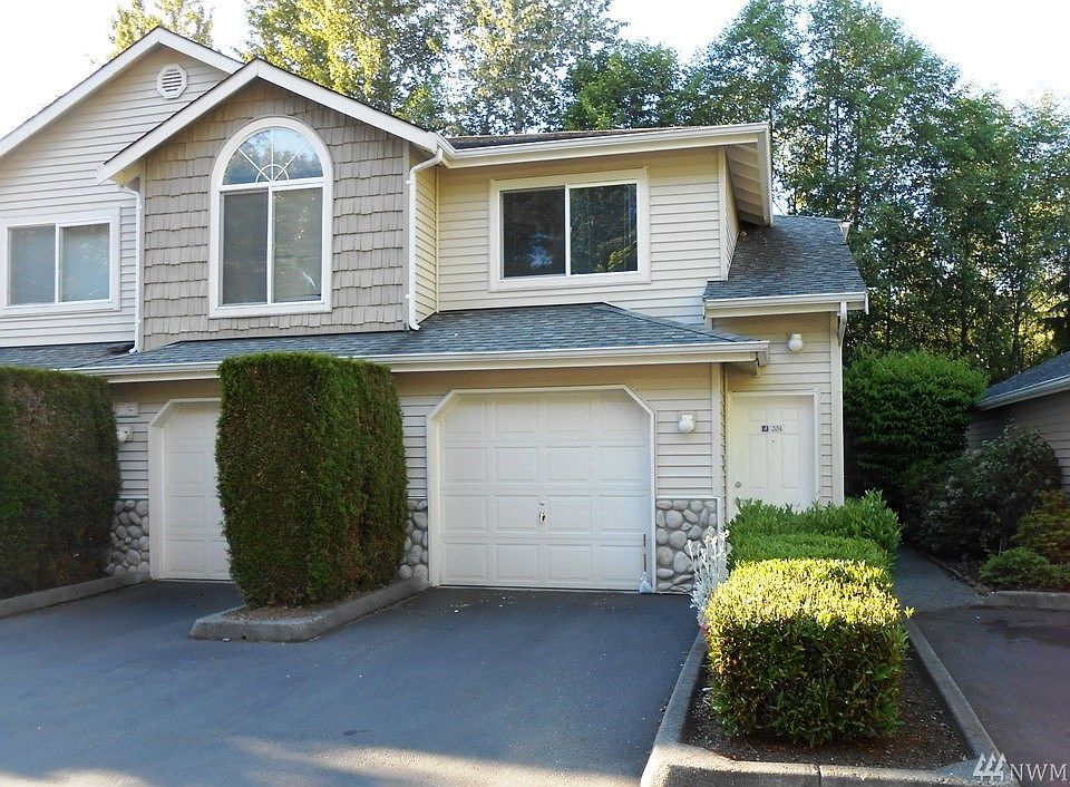 Bright, Open, 3 bd/1.75 bath condo in Sought after Garden Grove. All main living on upper level, backed to greens. 1549 sf. Huge living rm w cozy gas fire place, surround sound system. Open dining area. All appliances stay, Master w/ master bath, double vanity, features double closet w/ mirror doors. Ceiling fan, spacious, private balcony for entertainment. Attached garage plus assigned parking lot & a detached garage/storage. Close to everything, boeing, shopping, restaurant, freeway excess..