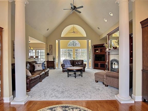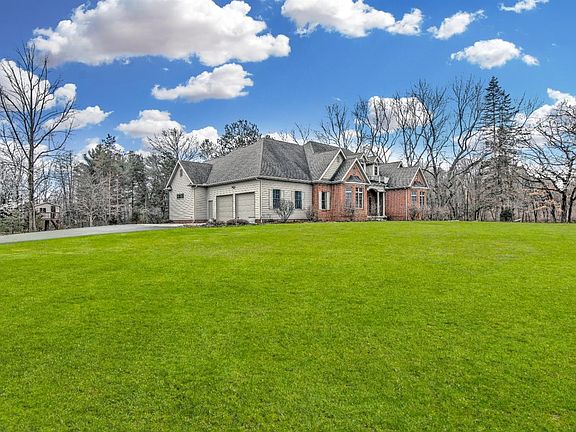 PICTURESQUE SETTING FRAMES THIS CUSTOM BUILT RANCH WITH WALK OUT FIN BASEMENT ON 10 ACRES- 2 PONDS /BRIDGE & WATERFALL! Surrounded yourself with nature & tranquility! SHOW STOPPING VIEW AS THE FRONT DOOR OPENS! Open concept design, the HUGE Great Room with fireplace & custom built- in shelving showcase the design quality throughout this home! NEW CARPET! Formal dining rm. for the largest of gatherings! Breathtaking views from SPACIOUS 4 SEASONS ROOM flanked with windows for perfect views throughout changing seasons. Equipped with wet bar/frig for refreshments while you watch all nature has to offer. The large eat-in kitchen boasts Pantry, Island, Granite & all amenities! Fabulous Master Suite featuring ASIAN WALNUT WOOD FLRS. RELAX in the SPA like master bath! WALK IN SHOWER, soaking tub, Separate Dbl. vanities! Office with built in cabinetry, 2 other main level beds generous size! Walk-out partially Fin Basmt adds 2 LRG beds & LOADS OF STORAGE! LARGE STORAGE SHED & TREE HOUSE