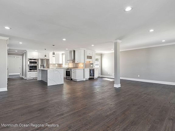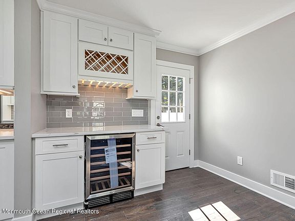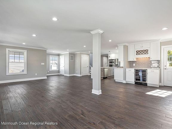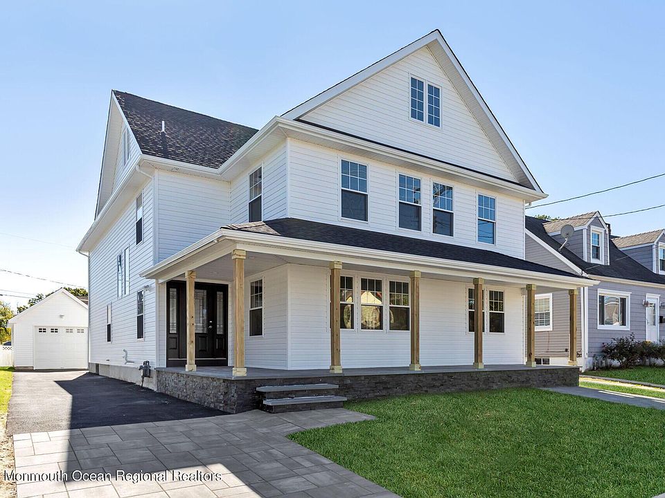 You will fall in love w/ this custom built shore colonial the moment the rocking chair porch welcomes you. This Stunning 5 bed, 3.5 bath has all the bells and whistles. Beautiful wood floors upon entering the open concept floor plan. Kitchen offers oversized waterfall center island, pantry, SS appliances + 42in soft close shaker cabinets. Crown molding, recessed lighting + wet bar accent this 1st floor suited for entertaining guests all year round. Featuring both a 1st + 2nd floor master suite w/ walk in closet + high end bathrooms. 2nd floor boasts 4 generous sized beds w/ recessed lighting, crown molding + ceiling fans for those open windowed nights. BONUS THIRD FLOOR + finished basement are great for a play room, theater, home office or those friends that won't want to leave the beach
