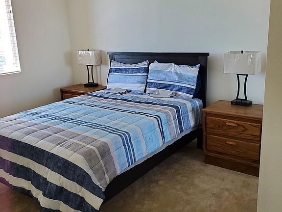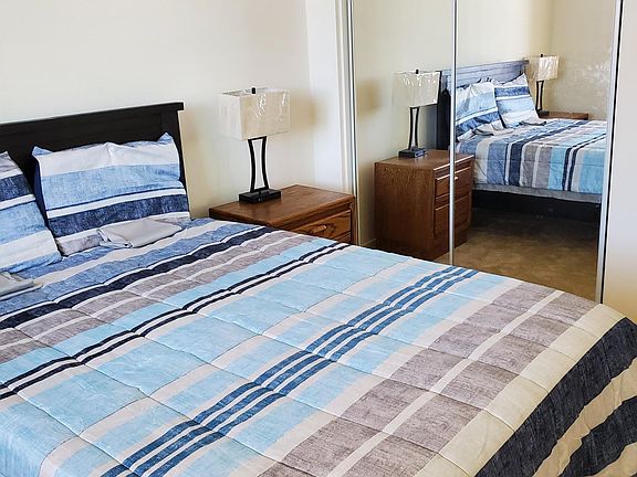 I have three rooms to choose from to rent. Fully furnished room with a bed, lamp and two nightstands. Private full bathroom. Parking. Rooms have a window. One room has a 65-inch TV this is optional and could impact the rental price. Mirrored closet. Carpet room. Vaulted ceiling. Quite location. You have a private restroom with a tub and shower.