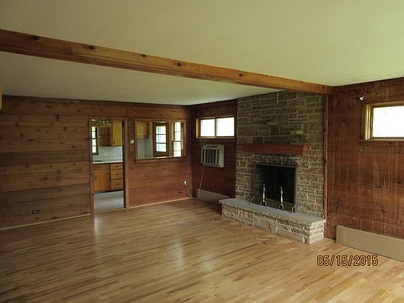 Check this out! Almost 1 acre in quiet neighborhood, wood floors, partially finished basement, fireplace, mature trees and large 3 car garage. 2 BR''s, but could be 3. With some updating, this could be fantastic! Sold "as-is", no survey provided.