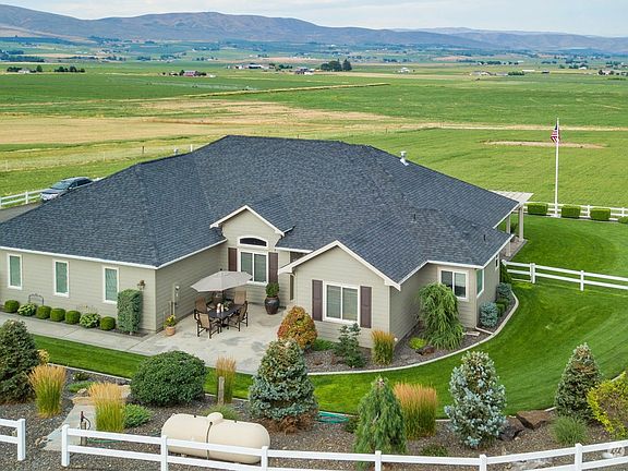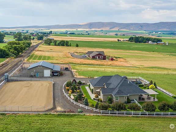 Welcome home to this gorgeous ranch rambler w/views of the Stuart Mts, Mt Rainier & Kittitas Valley! The sunsets are beautiful from this vista! This impeccably maintained home has open floorplan & 10 ft ceilings w/quality finishes-including gas fp w/stone surround. Dream kitchen providing plenty of room for cooking & entertaining. Lux Primary suite. Flex space-use as dining or rec rm. Work from home in lge office. Oversize gar-1013 SF. 2 patios-one w/arbor & electric sun shade. Amazing landscape. There’s 38 X 48 -2 stall barn w/tack rm & ½ bath + a separate shop. Addit carport-vehicle/trailer or hay storage! This property wouldn’t be complete without a 70 X 110 arena & 2 loafing sheds. 10 Irrig. acres in TWO separate 5 acre parcels.