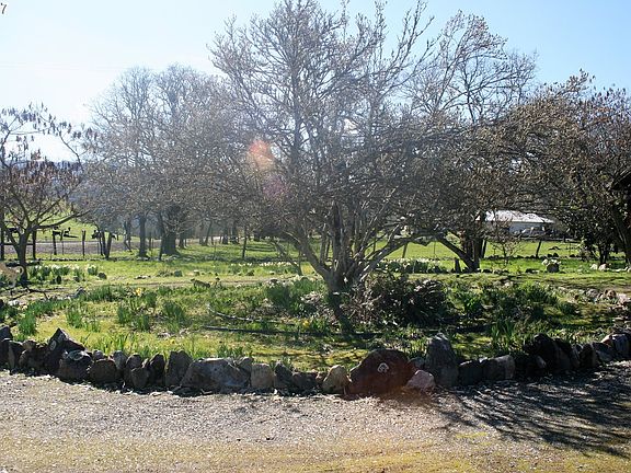 The Feel of County Living Right Here In Town! This spacious home is 3 bd/2-1.2 ba with family room & living room. Newer hot water heater & roof. Garage attached with built in storage. RV Pad with hookups. Covered Back Patio Area. 1.05 of an acre with views from every direction. Several fruit trees, a grape arbor, and lots of flowers just waiting for Springtime! 3 outbuilding for extra storage with one being a workshop. Dog Run area.