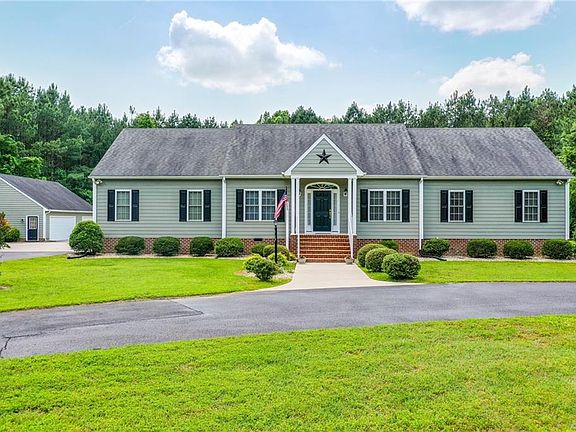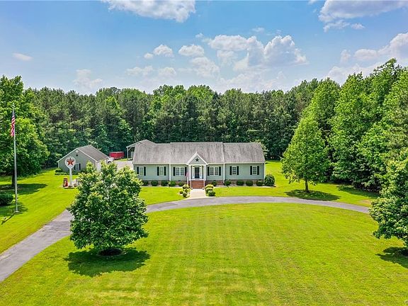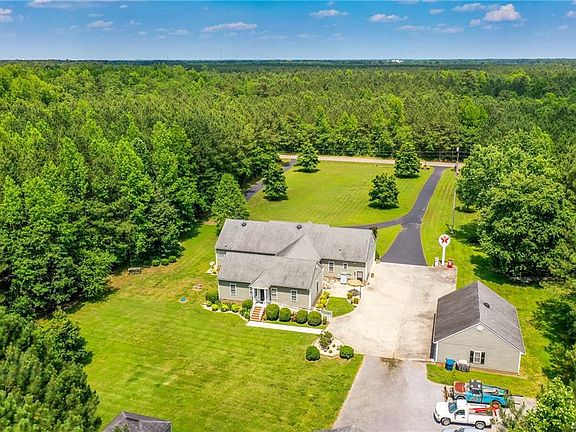 Welcome to 721 Birdsong Road, a quality custom built home with 3200 SqFt sitting on 5.30 Acres backing up to Petersburg Country Club's Golf Course. If you are looking for a home with an in-law suite with private entrance and ramp, this is it! It offers a Living Rm, 2 bedrooms (one on each side of Living Rm), each bedroom has it's own full bath and lots of closet space, hardwood floors, gas fire place and sun room. The main home and in-law suite have a total oF 5 bdrms, 4 1/2 baths; the main home offers living rm, formal dining rm and large eat-in-kitchen with lots of cabinets. Access to attached garage is through Util Rm to finished 20X20 garage. There is a stairway to the Bonus Rm above the garage with access to attic storage. The Bonus Rm has it's own heat & AC unit. Enjoy your morning coffee in your screened porch. There is a finished detached 28X36 detached garage with floored attic, a 40X24 pole shed, 12X16 detached storage bldg. Lots of rooms for cars and other hobby ideas. All of this is close to Ft. Lee and I95/I85. Home comes with 2/10 Home Warranty.