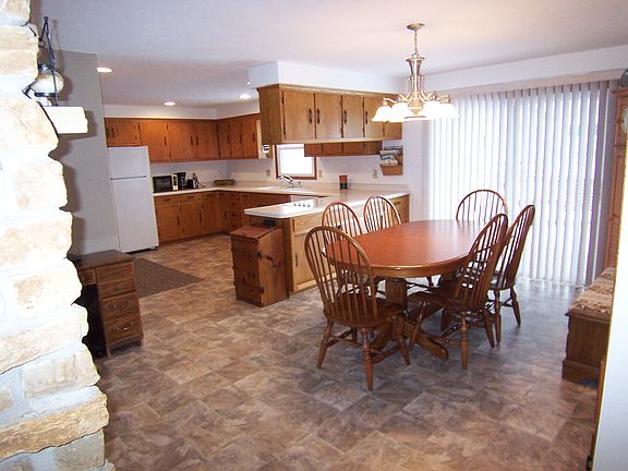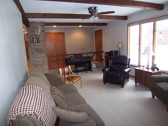 Curb appeal w/ fieldstone front. Impressive sized kitchen/dining. Dining area w/ hutch & patio doors leading to lg deck. Step-down living area. Bthrm vanity w/ dual sinks. FirePlace, Bar and option to complete a FULL bath downstairs. 2013 updates include all new gas forced air furnace, ductwork and AC, water heater, dishwasher/garbage disposal. New flooring and paint. New tub/shower. Underground storm water hook-up.