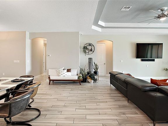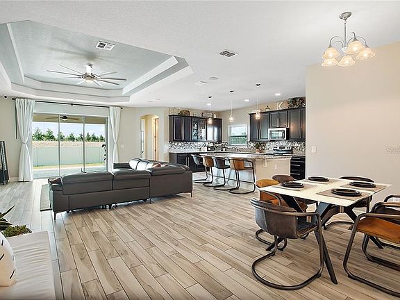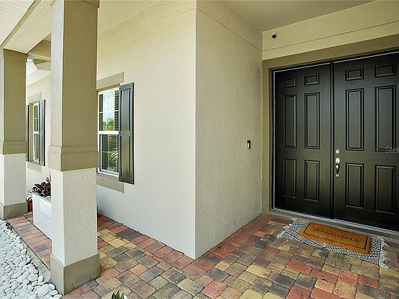 This one won't last long: a practically new 5-bedroom solar-powered stunner in the heart of the popular Venezia development. Absolutely every detail has been taken care of -- from the paver-stone driveway and landscaped yard to the beautiful porcelain plank tile work and neutral color choices throughout the interior. The kitchen anchors the wonderful open-concept floor plan. It has extended cabinetry, stainless steel appliances, granite counters and a huge island with seating for a crowd. Standing at the island, you can see what everyone else is up to in the living room [defined by the double-tray ceiling with an ultra-modern fan] and the dining room. The family can sit down together there or take dinner out on the breezy extended lanai, which overlooks the huge fenced-in backyard. After dinner, retreat to your master suite, complete with another double-tray ceiling, bay window and a bathroom with double sinks, a separate soaking tub as well as a shower with a rain head. The other 4 spacious guest rooms each have custom shelving in the closets. Those rooms share the two other updated bathrooms [more granite, more beautiful tile work]. Back down the hall, you've got a utility/laundry room off the kitchen as well as a bonus mudroom in the garage, which has enough space for your cars, toys, outdoor gear and holiday storage. This home is just as efficient as it is beautiful. You have an 80-gal.high-efficiency smart tank water heater [last person to shower won't run out of hot water!] and the roof is lined with solar panels that power your entire home [go ahead, turn up the A/C!]. There are no projects on your honey-do list here and the awesome location allows you to hit the links or be on your boat with a fishing pole in hand within minutes.