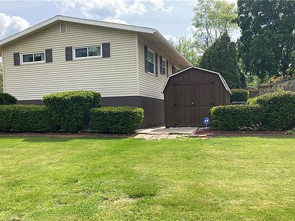 Open Sunday 1-3. Stop in to see this nice three bedroom ranch home on a lovely corner lot! You will like the "open" feel of the living room that flows into the dining area and kitchen. The kitchen has plenty of cupboards and counter space, and the dining area has new wains coating and a large picture window that lets in natural lighting. Three bedrooms (with new carpet in two of the bedrooms) and the main bath (with double sinks) are on the first floor. In the walk out lower level, you have a half bath, plus a separate shower and your laundry area. The spacious finished rec room has lots of extra storage and a walk out to the private back yard. Your large front deck is perfect for relaxing on and connects to the fenced side yard. The roof was new in 2019, the high efficiency furnace and A/C were installed in 2018. You do have wood flooring under carpets on main floor! An 8x10 storage shed is great for extra storage needs.