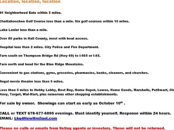 Near Chattahoochee Golf Course. Triple garage insulated with heating and cooling. Home purchased new in 2019. Master on main with trey ceiling and huge closet. Master bath with separate shower and freestanding soaking tub, dual sinks. Linen closet in master bath and upstairs hall. Large kitchen with soft close doors, wall oven, gas cooktop, farmhouse sink, pot filler, large pantry, separate broom closet, laundry room. Stainless appliances in kitchen. Main floor has two eating areas and two living areas each with a vaulted ceiling and fireplace. Fireplaces are wood burning. Four additional bedrooms upstairs or three bedrooms and a bonus room. All bedrooms have a walk-in-closet. Large covered front porch with swing. Huge rear patio. Tile on first floor. Upstairs has upgraded carpet. Minimum lease six months. Add $500 month if furnished. Pets must be approved. Pets must be housebroken to enter house. Non-housebroken pets required to use dog pen outside for housing. Provide picture and breed. Pets only allowed on first floor - not upstairs where carpeted. 30-day notice if six-month lease, 60-day notice any longer time period. NO SMOKING. NO DRUGS. Credit and criminal check required. Proof of income required. Landlord mows lawn and provides lawn treatment. Landlord does not weed beds or trim bushes. Landlord does not provide any utilities.