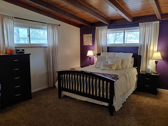 This is a 3 bedroom, 1 bath home with laminate hardwood flooring, first floor laundry, 2 car attached garage, vaulted ceilings with exposed wood beams, and a 17x21 ft sunroom.
