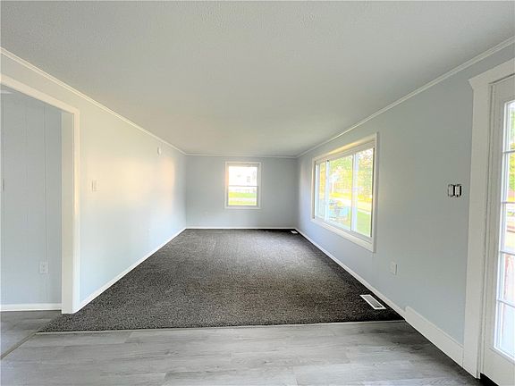 One floor living! So many updates! Brand new roof, All new exterior and interior doors, tile bathrooms, New kitchen countertops, new carpet in the living room, updated central air and furnace, lights and plumbing updated, newer hot water tank all in this beautiful 4 bedroom 2 bath home with an extra room that has hook ups for a laundry room or use it as an office. The open floor plan from the kitchen, to the dining area and into the spacious living room make for a refreshing yet cozy feel. The master bedroom has an updated bathroom with a walk in shower. The large open basement has another set of laundry hook ups and has been partially prepared to build extra rooms! Two lots make for a great yard! Come check out 721 court street today!