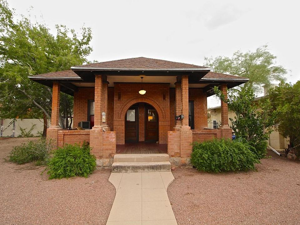 One of the most distinctive properties in West University. Ripe for restoration!! The great arches and exposed brick work to the front duplex with separate studio in back. Large HR-2 Lot allows for many possibilities. Off street parking off alley. 5 minute walk to Main Gate of U of A and 4th Avenue shopping and dining.