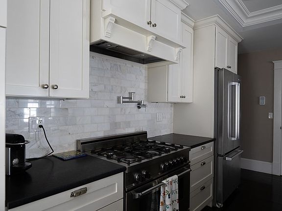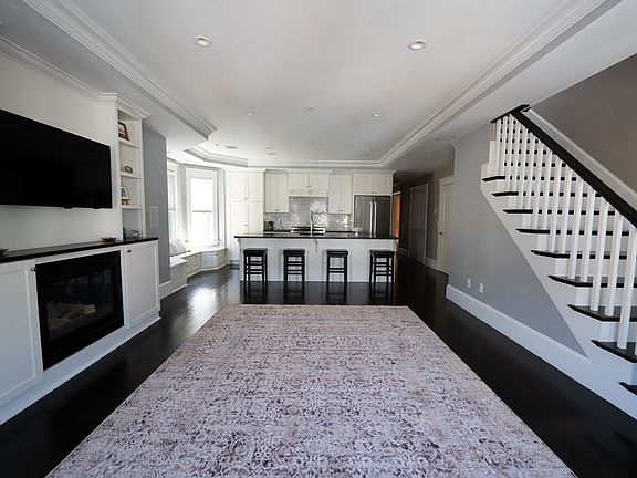 Spacious and Bright Top Floor Condo in boutique 4-unit building was newly constructed in 2011.Pull right into your two in building deeded garage parking spots. entertain with your EXCLUSIVE PRIVATE ROOF DECK and Private Entrance!.This meticulously maintained, 2011 ground up construction 2 BD, 2.5 BA condo offers well appointed finishes with an oversized living room open concept living/dining/kitchen with 2 exposures, recessed lighting and built-in speakers throughout. The living area and front facing dining space feature custom built-ins with a gas fireplace, large kitchen with honed stone counters, stainless steel appliances, pot filler, beverage cooler and an adjacent half bath and coat closet. Continue on to the spacious guest bedroom with ample closet space, directly across from the full guest bath w/shower/jacuzzi tub combo. A rear facing king-sized master suite has a custom walk in closet, ensuite bath with dual head steam shower, and private access to a private deck.