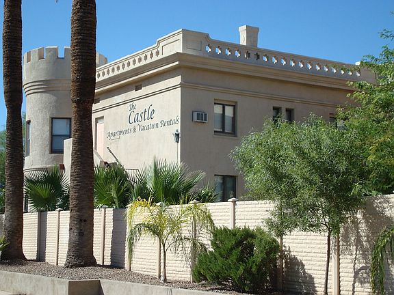 Our comfortable, quiet and secure apartments are located less than 1 mile from the University of Arizona and the downtown campus of Pima Community College. All apartments are air conditioned, and utilities (water, gas and electric) are paid with the cost of rent. Wifi is also available for only $20 per month! Amenities include swimming pool, bar-b-que area, laundry room area and off-street parking. Need a furnished apartment? We offer furnishings for the any of our apartments for an additional $50 per month. Contact us for details regarding this option. Available August 1st: Apartment #29, a large 2nd floor one bedroom apartment. This unique tower apartment is one of our most sought after units because of it's round bedroom offering a nearly 360 degree view of the city!