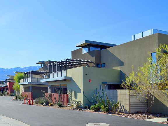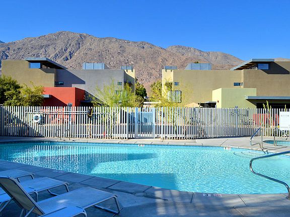 This contemporary townhome located several blocks from downtown's restaurants and activities is the perfect place to experience Palm Springs. Gated, with 2 covered parking spots just outside your door, fireplace, laundry, upgraded interiors, views, 4 pools and spas on land that you own. There are 2 ensuite bedrooms and a powder room. This home is in meticulous condition and is in an exceptional location.