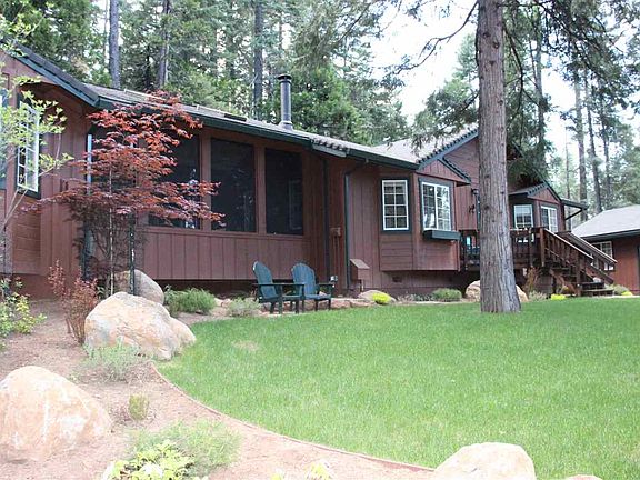 Clean, well maintained single level home sits beautifully on a scenic lot in the Lake Almanor Country Club. It features 3 bedrooms and 3 full bathrooms, an open floor plan, a lovely screened porch room, central A/C, attractive landscaping, pleasant back deck with new hot tub, "ping pong pavilion" and horseshoe pits. There is a 2-car detached garage as well as 3 storage/garden/tool sheds. The master suite wing of the home was added in 2009, along with a small storage room currently used for extra sleeping, the screened porch room, second water heater, and a new furnace. Enjoy the beauty of this tranquil location in the trees. LACC amenities include: recreation areas with sandy beaches, park/playground, tennis, boat ramps, golf course and more. Your summer fun awaits you!
