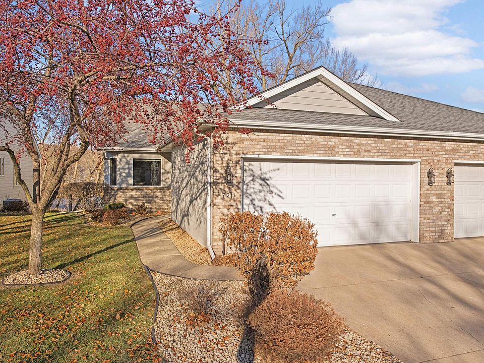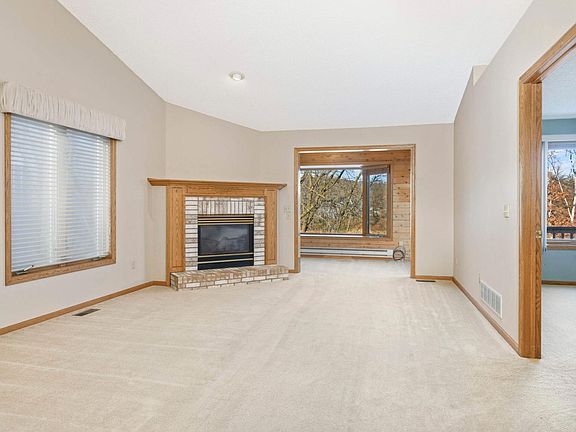 Absolutely Amazing Location! Fabulous Pond Views! One level living! This end unit townhome is located on a private cul-de-sac street with beautiful grounds and pond views. Main level features a light and bright open floor plan w/vaulted ceiling, oversized living room/dining room, fireplace, large kitchen w/dining area, primary bedroom w/updated full bath and walk-in closet, office/bedroom, sunroom with gorgeous views overlooking private backyard and pond, deck, and laundry room. Walkout lower level features a large amusement room, bedroom, 3/4 bath, workshop, and lots of storage space. NEW ROOF 2022 AND SIDING 2023, beautifully maintained community w/ self-managed association and low association fee. Convenient Roseville location. See today! Sure to please!