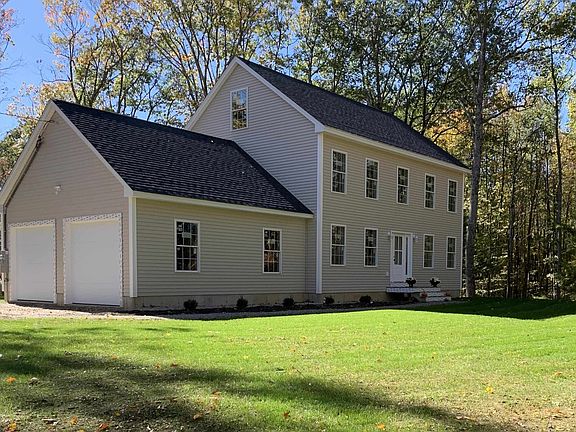 New construction colonial with two-car attached garage on a 2.49-acre lot located in a fantastic commuting location abutting 675-acre Northwood Meadows and its walking/hiking trails to enjoy. This home includes a kitchen with center island, custom cabinets and granite counters, tile in the bathrooms, and hardwood throughout the open-concept first floor. Three bedrooms upstairs include a large master with walk-in closet and en-suite bathroom. Upgrades at this price include: central air, gas fireplace, on demand Rinnai hot water heater, hardwood stairs, granite counters in the kitchen and baths, tiled shower in master bath, first floor washer/dryer, upgraded front door, and paved driveway. This home will also feature a walk-out basement, walk-up attic and 4-bedroom septic for future expansion (pricing upon request to finish the third floor to add an additional 576 sq feet of living space). The photos are a reasonable facsimile of the finishes to be built.