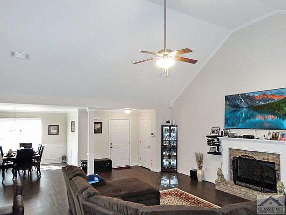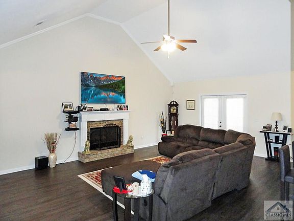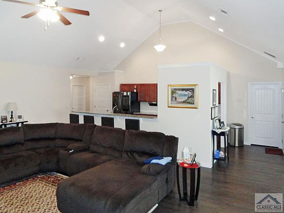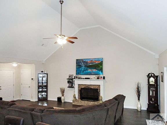 Come view this amazing ranch at Creekside Manor this Sunday starting at 12pm! Call to set up your appointment to view this like new home which is the Grayson plan! Walk in the front door to a HUGE open floor plan with the Great Room and Kitchen. They have a vaulted ceiling, durable pergo flooring and is an open to have conversations or watch TV while preparing a delicious meal. The spacious Great Room has a wood burning fireplace that has never been used. The kitchen has granite counter tops along with an area for four stools to eat your meal at the counter. There are LOTS of counter, cabinet space along with a closet pantry and stainless steel appliances. The Dining Room is ready for your family or friends to gather and enjoy a meal together. The utility room is off the Kitchen. The Master Bedroom is large with a trey ceiling, fan/light, and walk-in closet. The Master Bathroom has a double vanity, linen closet and a shower. The other two bedrooms share a Jack-N-Jill full Bathroom with both rooms having walk-in closets and TV's mounted on the walls that will remain with the home. Step out the back door from the Great Room onto a private patio that has a privacy fence in the backyard and a sodded lawn. You will enjoy grilling and spending time on the back patio. There is a two car garage. This great home is in great condition and is located within two minutes of the Caterpillar plant, Highway 316 and Creekside Manor is located off Highway 78. Whether you need to drive to Athens, Atlanta or Conyers, this home is conveniently located to access each of these communities.