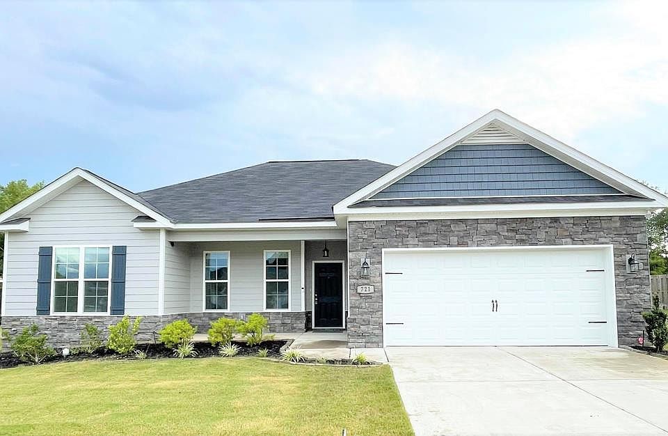 Beautifully landscaped 4bd 2ba ranch-style home with a split floor plan, wainscot paneling, and crown molding throughout all main living areas and hallways. Kitchen is equipped with eat-in area, stainless steel appliances, marble countertops, bar-top center island with storage, soft close cabinets, and pendant lighting. All bedrooms have octagonal, trey ceilings. Owner's suite boasts a separate sitting area, private fireplace, and a barn door that leads to the master bath with walk-in closets, framed mirrors, double sink vanity, garden tub, separate shower, and water closet. Recessed lighting, 2" faux blinds, marble countertops, and plenty of storage space throughout. Entertain family and friends on the covered patio overlooking the spacious fenced yard.EV (electric vehicle) charging station in garage. Only 10 min from Ft. Gordon, I- 20 & shopping!! All nestled away in Willow Oak Village with a neighborhood resort-style pool, walking trail, street lights, and sidewalks.