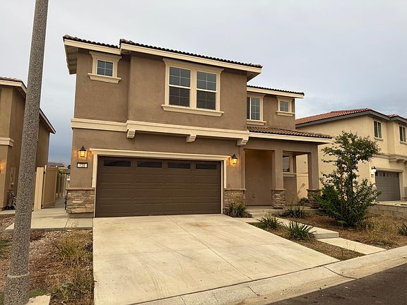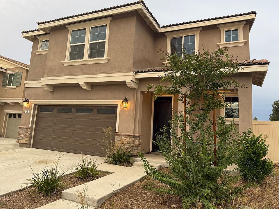 Move-in ready home with solar panels included! This stunning two-story Plan Three at Mountain Bridge North features a beautiful Tuscany-style exterior. The main floor boasts an open-concept design with a spacious great room, a cozy dining area, and a stylish kitchen with a large center island and a roomy walk-in pantry. Downstairs there's also a generous secondary bedroom with an en-suite bathroom and walk-in closet. Upstairs, you'll find three additional bedrooms one with a walk-in closet a full hall bathroom, a versatile flex room, and a convenient laundry room. The upper level is rounded out by a luxurious primary suite with a spacious walk-in closet and a deluxe private bath with dual vanities, a relaxing tub, and a walk-in shower. The backyard features a built fire pit to enjoy the evenings.
