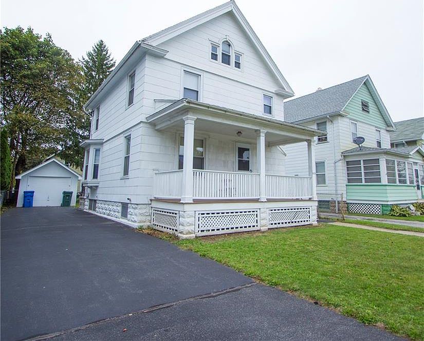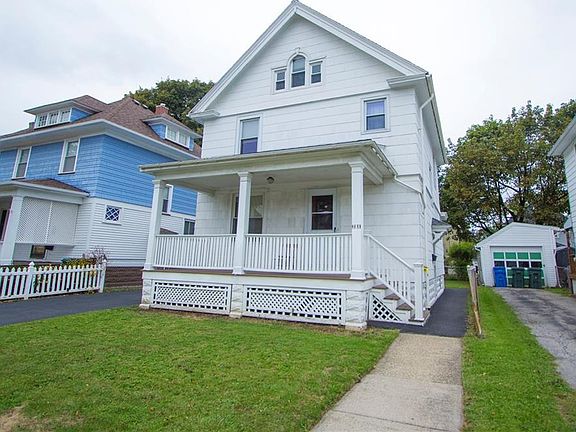 Lovingly cared for 3 bed 2 bath colonial with beautiful hardwoods and trim, finished attic and finished basement with bonus kitchen. Detached 1 car garage and partially fenced, private backyard. Large eat in kitchen with appliances included. Living family combo. 3 large bedrooms with ample closets and 2nd floor covered porch. Spacious finished attic adds extra living space. Finished basement with 2nd kitchen, laundry and root cellar. Roof 2007. Boiler 2013.
