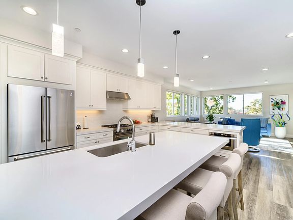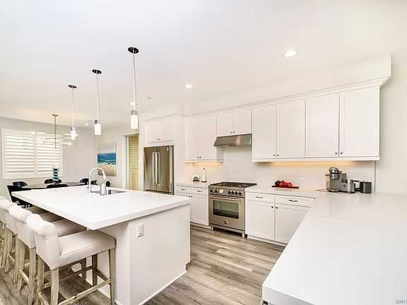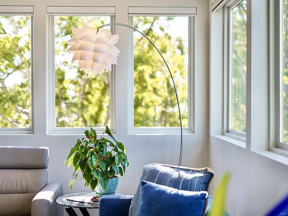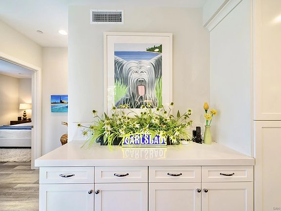 Luxurious single-story VIEW condo in the heart of Carlsbad Village. Impressive 2nd floor corner unit has "tree house feel" w/ elevator access, modern open floor plan, private deck w/ 2 additional storage closets. Quartz countertops, luxury flooring, white shaker cabinetry w/soft close doors, chef's kitchen w/ island, 2 counters that accommodate 8 bar stools for the ultimate entertaining experience. This gorgeous 2nd floor condo radiates a contemporary beach vibe, and offers custom paint, designer energy efficient LED lighting and mirrors, Hunter Douglas Sonnette Power View motorized blinds & custom plantation shutters, Bertazzoni Master Series appliances including 4 burner gas range, French door refrigerator + Sharp microwave drawer, full-size washer & dryer in-unit laundry & bonus of 2 additional storage closets off the private deck & walk-in storage closet in the breezeway. Lg 2nd floor patio w/table seating for 10 + lounge furniture and umbrellas. Ground level gated parking garage with 2 assigned spaces. Grand Madison Carlsbad, built in 2019, offers 11 luxury single-story condos with elevator access for true single story living. In the heart of Carlsbad Village on the southeast corner of Grand Ave/Madison St, this ocean-close community offers a relaxed beach lifestyle in a lively location. Walk/bike to the beach, enjoy a meal at a neighborhood restaurant, checkout the local arts and music scene, catch a train out of the Carlsbad Village Station or experience the Carlsbad 5000 and Street Fair just to name a few options. Live your best life in the Village!