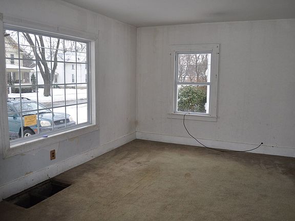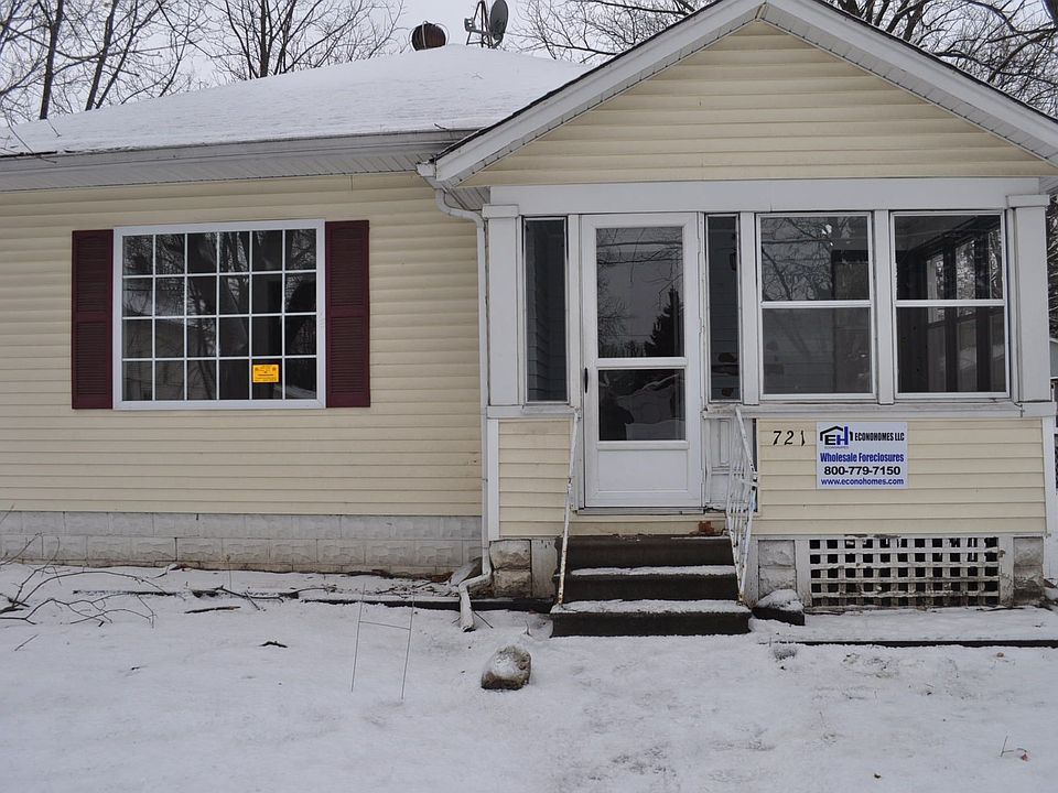 Exterior Features: Wood frame house siding is yellow with white trim. Foundation looks soiled.Windows some look newer. Soffits and eaves are intact.Quaint front porch.Roof looks to be intact.Driveway on side of house no garage. Shed in back Interior Features: Living room walls are off white carpet is brown.Dining room walls are green with laminate floor. Kitchen is small cabinets are in good condition.1st bed room walls are lite green with brown carpet. 2nd bed room is lite pink with brown carpet.Bath room tub, sink and toilet are intact. Basement is clean.Mechanics none.