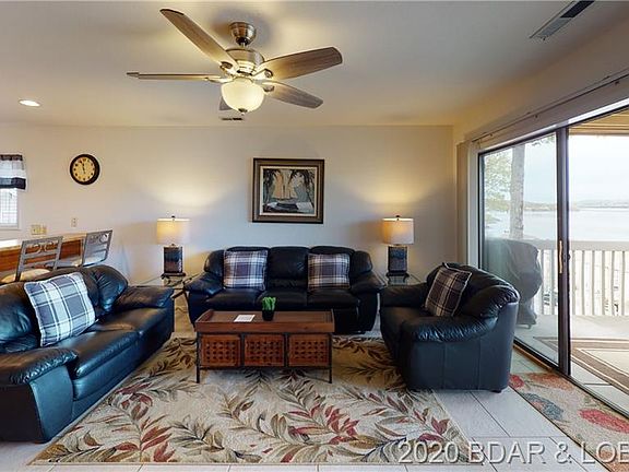 STUNNING VIEWS from this super convenient 2 bedroom walk-in condo in GREAT LOCATION in the center of Osage Beach just minutes from shopping, dining, and entertainment by car or boat and just two steps from your car to the door. Updated tile flooring throughout unit (except bedrooms) is great & easy care for lake living! Open concept floor plan with bar seating in kitchen. Enjoy summer evenings relaxing on your covered private deck watching the boats cruise down the main channel or sip a cocktail by the pool that is literally 2 steps out your front door. Condo comes turn key and has 4 YR OLD HVAC system that's still under warranty, plus includes 10x24 slip located in Dock 1 - first slip so no walking to the end of the dock with your cooler! Just minutes by boat to popular destinations such as Backwater Jack's, Dog Days, and Redhead. Complex under new management and offers 3 pools, 2 are heated, tennis court, picnic & playground areas & clubhouse. Would make a fabulous rental!