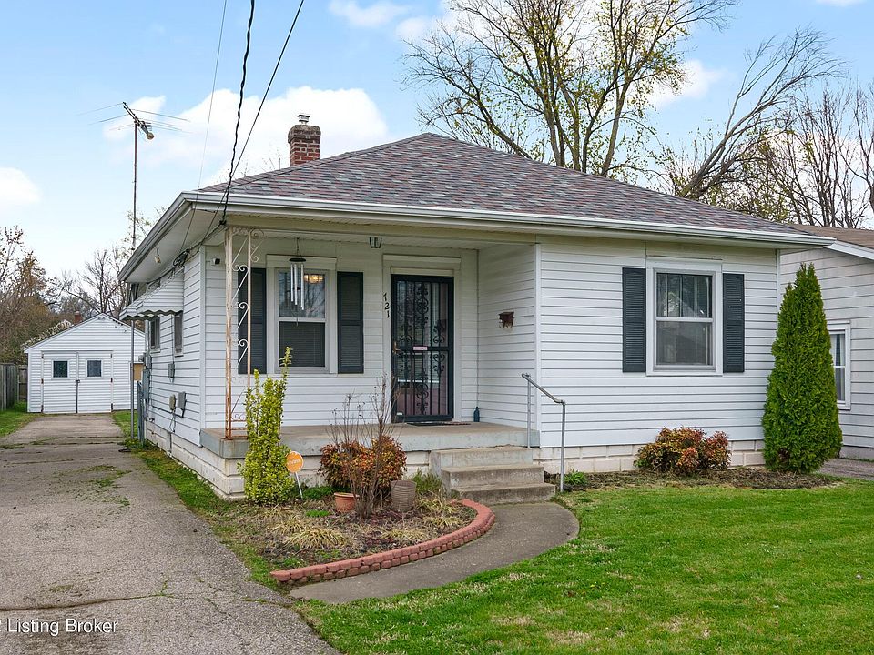 New job for the seller means new buyer for the home!Move in ready with stylish colors and look throughout! 2 bedrooms, 1 bath, kitchen appliances to remain making this a great buy! Extra long driveway leads to a large 1 car garage has plenty of room for storage as well! Bathroom has direct access to both bedrooms; A few turns away from Iroquois Park; minutes away from Southern Parkway, Gene Snyder, Watterson Expressway and Dixie Hwy; maintenance free exterior; luxury vinyl floor and updated bathroom are only a few years old; possession can be in May! Hard to find condition in hard to find price range in hard to find market!