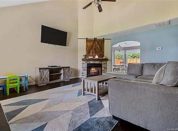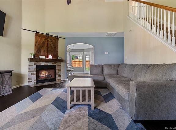 Gorgeous home filled with upgrades in an incredible location. The kitchen is every buyer's dream with stainless steel appliances, granite counters, subway tile backsplash & brushed nickel fixtures..STUNNING!! Oversized dining room with bay window overlooking the backyard. The gas fireplace in the 2 story great room features custom barn doors to enclose the media niche. Owner's suite on main delivers a walk-in closet and beautiful en-suite bath with double sinks, garden tub and separate shower. Handscraped wood floors in great room, dining and kitchen. Upgraded carpet in bedrooms and designer flooring in laundry room.Large private, fenced and level backyard. Conveniently located to Kingsley, Baxter, I-77 & more! Hurry this charmer will not last!