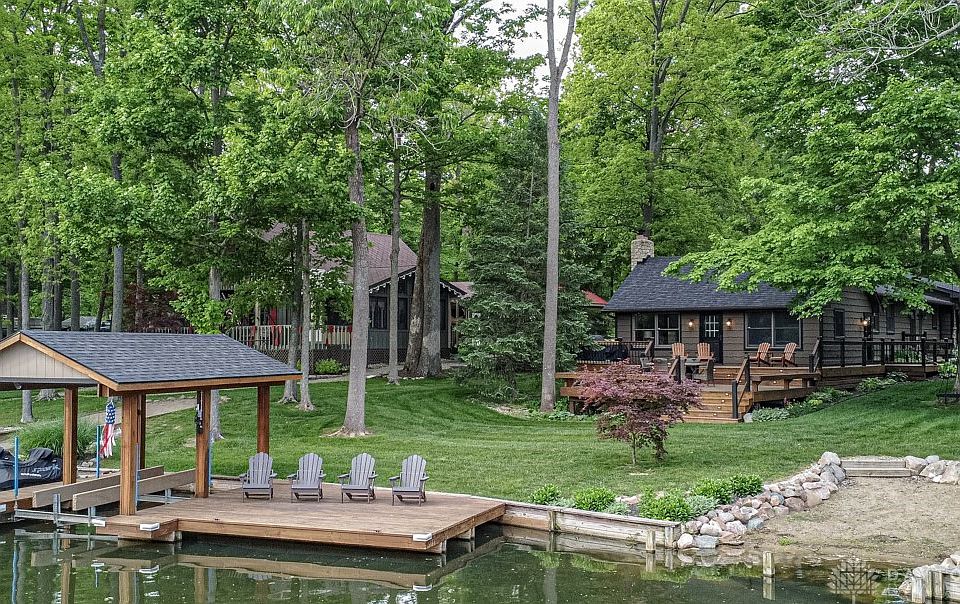 Experience lakeside living at its finest in this charming 3-bedroom, 3-bathroom home nestled on a picturesque wooded lot overlooking the serene cove of the lake. The cozy Great Room features a Stone-clad Gas Fireplace, rustic wood paneling, and a beamed cathedral ceiling, creating a warm and inviting atmosphere. The updated kitchen, open to the Great Room, offers the perfect space for gatherings, all while enjoying stunning views of the lake. Step outside onto the large deck, ideal for relaxing or entertaining, and venture down to the shore where you'll find a boat house and dock, perfect for all your water activities. The Master Bedroom boasts an attached bath and a walk-out deck, providing a peaceful retreat. Plus, the extra-large garage offers plenty of storage space, and the Amish-made shed built in 2021 provides additional storage options. New roof within the last year. With a U-shaped drive for easy access and a prime location in the heart Lake Lakengren, this home offers the ideal blend of comfort and tranquility for lakeside living. Seller ia a licensed Real Estate Agent.