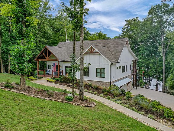 This elegant, open-concept, custom-built, modern farmhouse style home has beautiful lake views, high-end finishes, and amenities throughout. Whole house has a perfect blend of elegance, yet warmth, creating a cozy environment with all the luxuries you could ever ask for. Amazing craftsmanship from top to bottom. Recently built in 2018! Twelve-foot double sliding glass doors open up the main living area to the screened-in, outdoor living space and spectacular views of the lake. Perfect for entertaining or just enjoying the peacefulness of nature and taking in the lake views. The front, back and side yards are surrounded by trees. Even though you have neighbors around, you have a private oasis. Some design features include: 3 bedrooms, 2 1/2 baths, large bonus room with kitchenette.