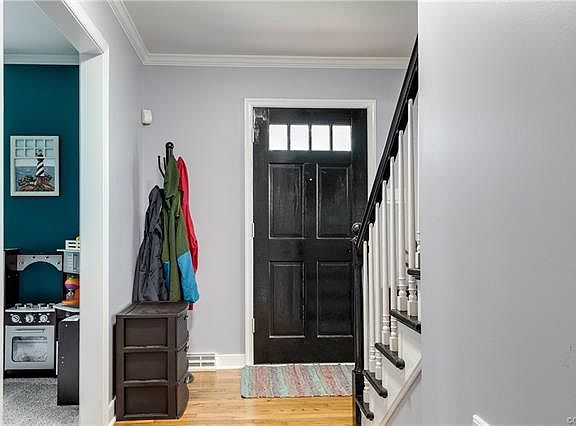 Welcome to 721 Milbrae Rd. This beautiful colonial style home is move in ready and offers tons of space! Spacious foyer greets you and leads into the formal living room w/ carpet and crown molding. Opposite the living room is a formal dining room that is bright and open w/ chair rail and crown molding. Make your way into the eat-in kitchen w/ plenty of cabinet space, built in desk, chair rail/crown molding, and ceiling fan. The kitchen opens up to the family room w/ a fireplace, hardwood floors, chair rail/crown molding, and ceiling fan. Recently renovated 1st floor half bath. Laundry/mud room off the kitchen has a back staircase leading upstairs to an open landing area that could be used as an office space. Above the garage is an additional room that could be a 5th bedroom. The master suite has hardwood floors, ceiling fan, and an updated en-suite w/ a stunning tiled shower and new vanity. 3 more bedrooms, all w/ wood floors, and a full bath w/ a double vanity complete the living space of this home. Out back you can relax on your huge deck overlooking the spacious, level lot w/ mature trees and a fire pit area. Convenient location just minutes from Midlothian Turnpike!