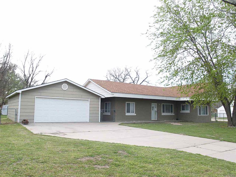 CALL BEVERLY FOR A PRIVATE SHOWING! Easy Hwy 235 access, be anywhere in Wichita in minutes! This house is ready to move in. Tile floors in the living room, dining room and kitchen. Kitchen and bath have upgraded beautiful cabinets and counter tops. Lots of canned lighting and ceiling fans. A corner lot with almost half acre with fenced back yard, and a two car garage. Refrigerator, microwave, washer and dryer stay with home.