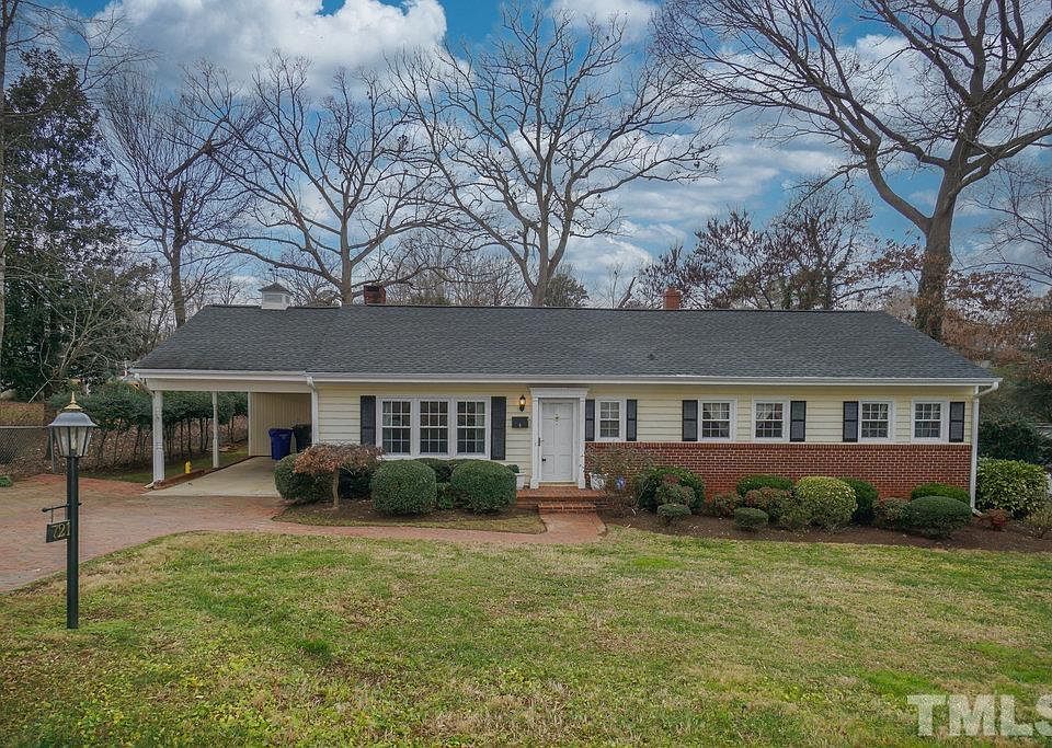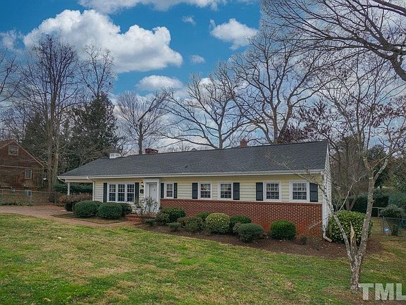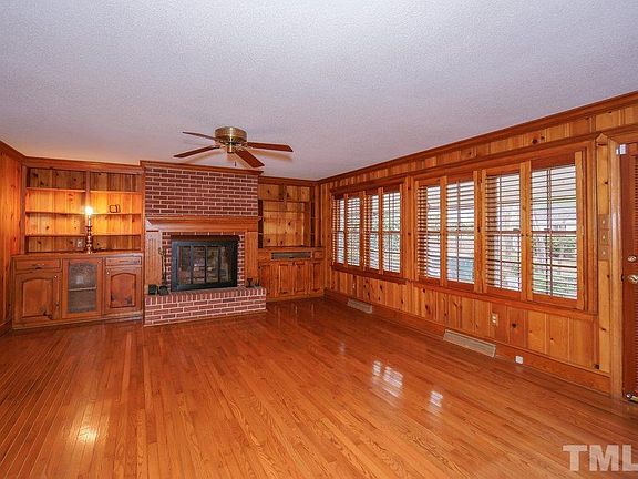 Nice 3BR 2BA Ranch in downtown Mebane. Same owner since 1955. Spacious Den with real pine paneling, beautiful wood flooring & gas log, brick fireplace. Built-in cabinetry. Kitchen has tile countertops, stainless appliances, island that seats 3, lots of cabinetry & storage. The formal dining has lots of lighting, crown & chair rails & parquet flooring. Formal living room with carpet & chair rail.Kitchen is open to Den & Dining room. Hardwoods under hall & bedroom carpet. Primary BA has walk-in closet w/ pocket doors & walk-in shower. Fenced rear yard with brick patio. This is a must see, move in ready home!