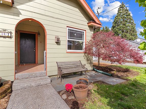 Montavilla Remodeled Home with Finished Studio. Charming covered porch with arched entry and garden boxes. Living room with wood stove, updated windows, and efficient mini-split. Open modern kitchen with updated appliances, breakfast bar, open shelving, and a perfect dining nook with oversized windows. Office or family room with extra windows, glass panel door to back deck. Remodeled bath on main and bedroom. Second bedroom up. Private and serene fenced backyard with cobbled patio and covered deck. 336 sq. ft. detached finished studio with high ceilings and French doors, perfect for an office or guest quarters. Close to Montavilla shops and restaurants. Click the virtual tour link for a 3D tour and floorplan! [Home Energy Score = 5. HES Report at https://rpt.greenbuildingregistry.com/hes/OR10226846]