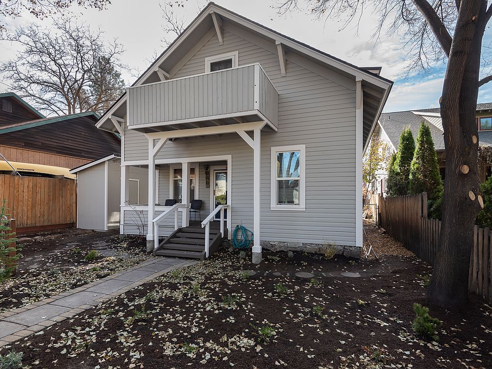 Spacious 1506 square foot home with two living spaces with separate entrances. The lower level is 2 bedrooms, 1 bathroom, full kitchen, living room, laundry room, original hardwood floors, open layout, multiple storage buildings, deck and patio. Upstairs is 1 bedroom, 1 bathroom, living room, kitchenette, two balconies, and Bachelor view. Detached garage and alley access. New exterior paint. Great location in the historic district, and Bend's Opportunity Zone. Close to the Old Mill, Downtown, Deschutes River, and more!