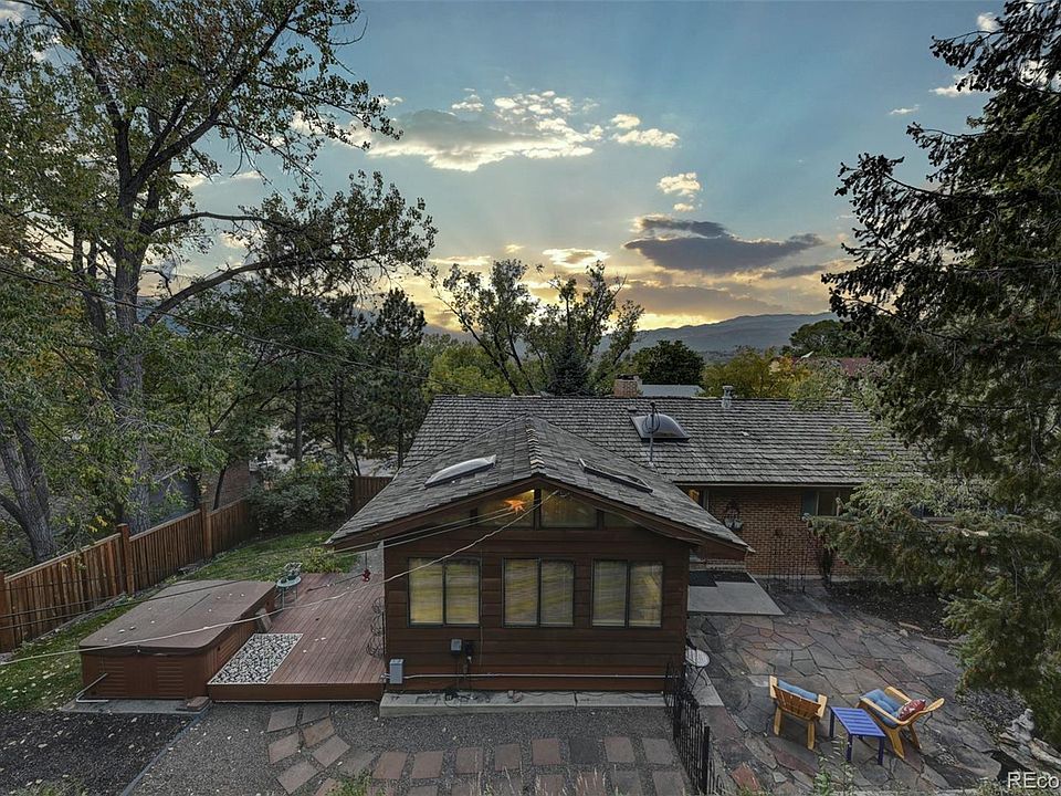 Income-producing Air BnB property on the West Side! Downstairs mother-in-law studio with private entry, fireplace, large south-facing windows, extra-large bath, and European style kitchen has been income producing AirBnB for 4 years. Updated laundry room with brand new LG full size stacked washer/ dryer is lined with plenty of storage, shelf and folding area including a cast iron deep utility sink with tile backsplash. Updated furnace, hot water heater, and windows. Oversized two-car garage with built-in shelving. Exceptionally large lot with the mature landscape in front and back. Stunning dry-stacked moss rock raised garden bed with integrated stone bench and stairs that lead to a gazebo (overlooking Garden of the Gods and Red Rock Canyon). The hillside in the back has been terraced with cedar raised bed vegetable gardens and a cute garden shed. This 3 bedroom home has 2.5 updated bathrooms and exceptional closet space with wood and tile flooring throughout. Central vacuum system. The gorgeous newly remodeled kitchen boasts all stainless steel appliances and a deep stainless sink. New Bosch dishwasher. Marble countertops and backsplash. Huge skylight. Commercial style gas stove with hanging stainless exterior-vented range hood. Glass door opens to a sweet flagstone patio with water feature. Open living/ dining area with built-in glass-faced cabinets in the dining area. The living room has a lovely oak-lined bay window looking directly at Pikes Peak. Two beautifully refaced fireplaces with slate and granite hearths and stunning mantles. From the dining room enter a rustic, wood-paneled 3 season south-facing sunroom with 2 well-sealed skylights that look out onto a small composite deck with a luxurious private hot tub. This home has so many wonderful features! It won't last long! Come see it today!!