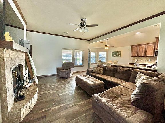 Walking into the home you are greeted by a beautifully designed open floor plan. The living room has ample space and a gas fire place. The kitchen offers stainless appliances, large pantry, and granite counter tops.