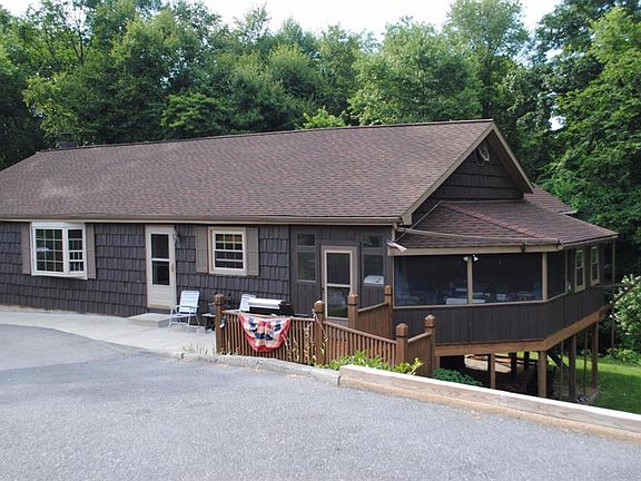 Surrounded by woods/fields, privacy abounds on a half acre. 1600 sq ft rancher with walk up attic, screened porch, unfinished hot tub room, walkout basement ''man cave'' complete with bar, wood stove/coal stove, workshop and pool table. Includes swimming pool & pool table! All appliances! Eligible for MONEY BACK GUARANTEE PROGRAM. Seller has PAID 1 yr Home Warranty to cover mechanicals, appliances, well/septic, roof leaks for Buyer! See 48 pics!