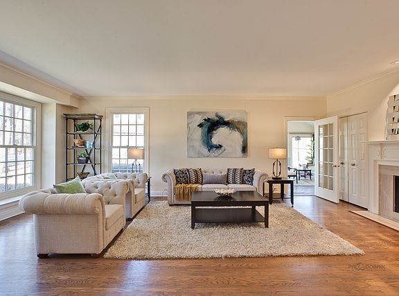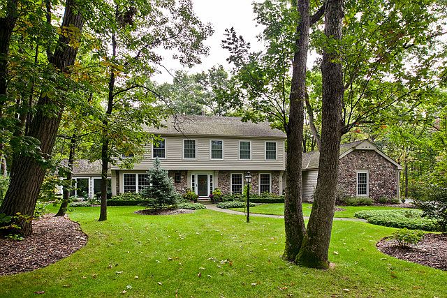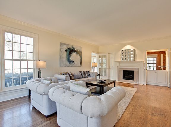 A prime lot & setting on the cul-de-sac at the south end of Rockefeller in Villa Turicum. Very spacious 4 bedrm, 4.5 bath home. Many improvements since 2014 include updated kitchen w/top appliances, gutted baths redone in today's popular design, extensive new Marvin windows & doors, hardwood flrs throughout, rebuilt chimney etc. The 1st flr includes formal living & dining room, three "extra" rooms-a large family rm w/frpl overlooking the deck & grounds, a den w/frpl & heated sunrm w/glass walls on three sides. The kitchen has a center island, planning desk, dining area & show-stopper window overlooking the wooded grounds! There is a full bath & powder rm on the 1st flr. The bedrms are spacious. The master has a compartmentalized bath separating the tub & shower and a walk-in closet. The family bedrms each have two closets. One has a private bath. A 1st floor laundry, 3 car attached garage & spacious EZ to finish LL are other fine features. The privacy & setting will win your heart!