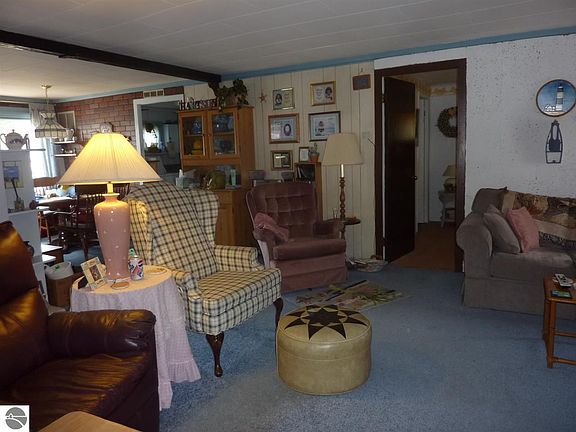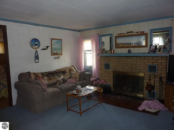 Beautiful sandy swimming beach, great view, gentle incline to the water is the setting for this nostalgic knotty pine cottage. There is a wood burning fireplace to add to the charm. An enclosed front porch, large deck for entertaining, and 2 large bedrooms for comfort. The lot offers a wonderful view with 51' water frontage & yard is fenced for protection of children & pets! The lot is deep with a long driveway for family & friends parking. Laundry room and all appliances are included. Furnishings are negotiable! Seller is motivated.