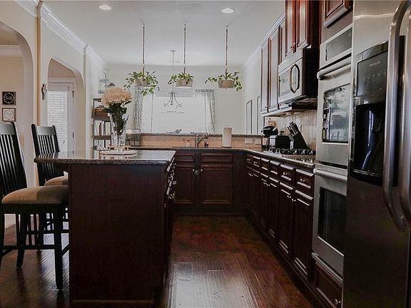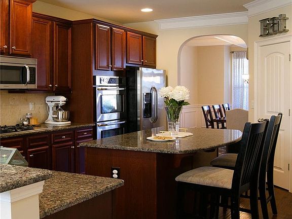 - Kitchen Features: Breakfast Bar, Cabinets Stain, Eat-in Kitchen, View to Family Room, Kitchen Island, Breakfast Room, Solid Surface Counters, Other Surface Counters
