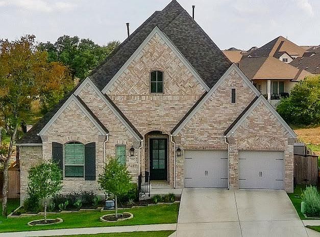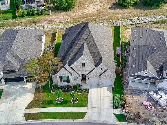 Home office with French doors frames the entry. Guest suite with a walk-in closet and a full bath. Media room with French doors. Kitchen features a large pantry and a large island with built-in seating space. Family room with a wood mantel fireplace and wall of windows. Primary suite with 12-foot coffered ceilings. Double doors lead to primary bath with separate vanities, a garden tub, separate glass-enclosed shower, and two walk-in closets. Extended covered backyard patio. Mud room leads to three-car garage.