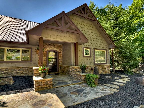 Southern Living Style Stunner on Heavenly Hothouse Creek at just the spot it feeds into the gorgeous Toccoa River...this charming craftsman home is situated at the end of quaint and quiet paved community on 4 acre tract with ultimate privacy & wide open water views, dockside recreation area with large level fire pit & fishing spots, 4-5 bedrooms/4.5 baths feature three massive master suites with access to covered porches, spa style baths with jetted tubs, double vanities & tile showers, walk in closets, mixture of wood & drywall for warm & sunny interior, cottage feel with rustic flair shines in the inviting foyer, chef's kitchen with custom cabinetry, new stainless appliances & built in displays, breakfast area & formal dining, great room adorned with floor to ceiling windows & cozy stone fireplace focal point open to sprawling covered porch overlooking view, upper level host spacious guest rooms & shared bath, fully finished terrace level boast guest quarters, office or multi purpose dreamy den area with fireplace spills onto generous screened & covered patio with surplus storage and entertaining area, 2+car covered garage on mail level + lower level garage & workshop area, low maintenance lush landscape yard area with gentle terrain, ultimate curb appeal at main entry with stone accents, walking trails galore, gated entry, minutes from historic downtown areas yet tucked away, just across the way from golf course, multi family retreat. New Fiber Optic Cable Installed!