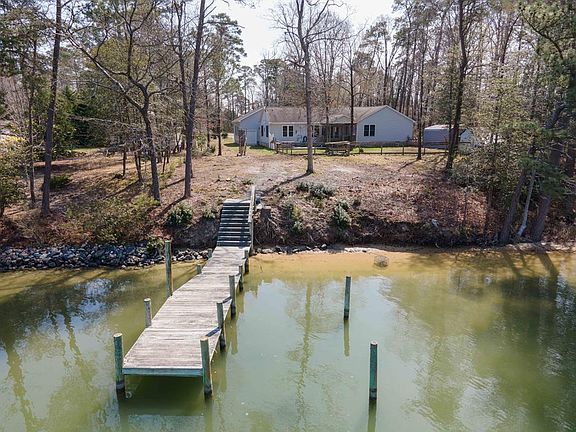 MAJOR PRICE IMPROVEMENT FOR THIS TURN-KEY BEACH/BOATING GETAWAY! Move right in to this gorgeous waterfront rancher in sought after Twin Harbors - a planned community with STUNNING WHITE SAND BEACH on the Chesapeake BAY as well as a community boat ramp & dock just 2 miles from the quaint fishing village of Reedville. INSIDE: Freshly painted throughout, this home has 3 oversized bedrooms & 3 FULL baths as well as fabulous water views from the main living areas & the owner's suite! You'll find beautiful wide-plank hardwoods in the common spaces and a HUGE entertainer's kitchen with granite tops, upgraded appliances, and a walk-in pantry. A spacious, waterside owner's suite features a luxurious bath with separate soaking tub and shower, and a large walk-in closet. A large open-concept family room, dining area and den create inviting spaces filled with natural light & a cozy wood-burning stove fireplace. There's also a large mudroom and separate laundry room. OUTSIDE: An inviting waterside screened porch and fenced back yard add privacy & a place to enjoy the views. There is a A separate Trex deck has a hot tub (no issues but conveys as is). The lot is nicely elevated and no flood insurance required. Enjoy your private dock on Owen's Pond with 3' MLW - a perfect spot on protected water, for kayaking, paddle-boarding, fishing, crabbing & your fishing boat! (limited tidal access to the Chesapeake Bay). A 22'x34' boat garage has oversized bay doors & is big enough to park your cars, boat (s) AND all of your water toys! Two storage sheds as well. Great FT, Getaway or Airbnb!