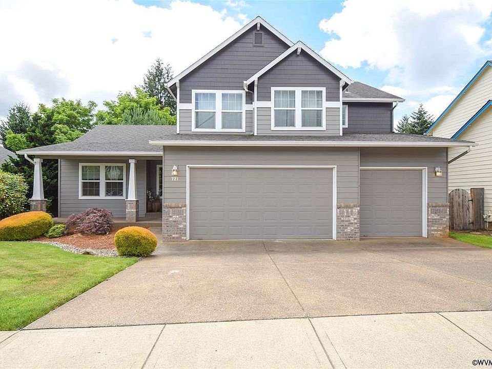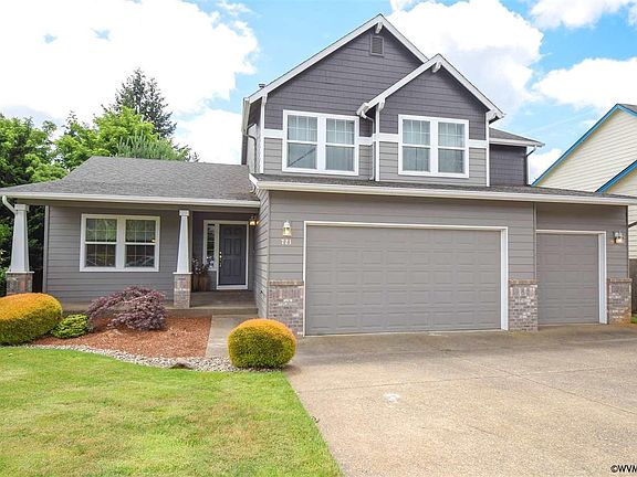 Wonderful West Salem Home, 4 bedrooms 2.5 baths, gorgeous covered front porch, three car garage and underground sprinklers. Living room and family room on main level with gas fireplace. Formal dining and breakfast nook off kitchen. Vaulted ceilings on main level provide spacious feeling, new laminate and fresh paint throughout. Master bedroom features walk in closet and master bathroom has soaking tub.