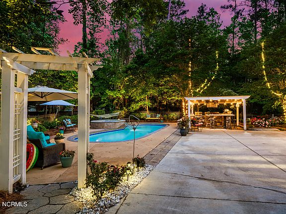 No attention to detail was spared in this beautiful home that is situated in the cul-de-sac and backs up to the neighborhood green space. Featuring 5 bedrooms and 4.5 baths this home has abundant space with a study/office and an additional family room. Hardwood floors are throughout living areas and primary bedroom. In addition to a large garden tub and separate shower, the primary suite has 2 vanities and 2 closets. There is even more space with a Mother-in-law suite that is handicapped accessible with an exterior wheelchair lift! The 3 car garage gives you ample room for cars, tools or toys. Enjoy your own private paradise in your fully fenced back yard with a heated salt water pool, hot tub and outdoor shower. Don't let this one get away-make your appointment today!