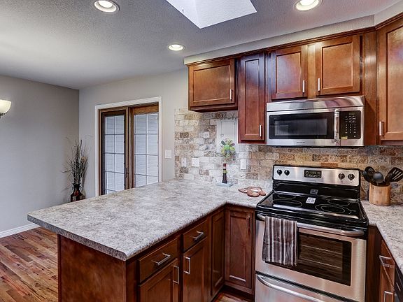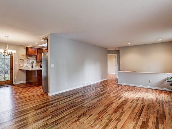 Main level living at it's finest! This charming rancher offers 4 bedrooms, 2 bathrooms and spacious oversized 2 car garage. Enter into an open living room with gorgeous hardwood flooring & custom paint. Dining area walks-out through to the backyard. Cozy kitchen offers ample cabinet space for storage, custom tiled back-splash, stainless steel appliances and counter bar. Kitchen gets extra natural light with skylight. Main level master bedroom awaits you with custom paint and beautiful hardwood flooring. Breath-taking5 piece bathroom features gorgeous custom tile work throughout and great cabinet space. A secondary bedroom completes main level. Travel down to find a completely finished basement with spacious family room, 2 additional bedrooms and full bath with custom tile work and great cabinet space. Travel out back to a large fenced backyard with 20x12 stamped concrete patio. Convenient to schools, shopping and parks. Minutes from Valley Hi Golf Course. Make this your home today!