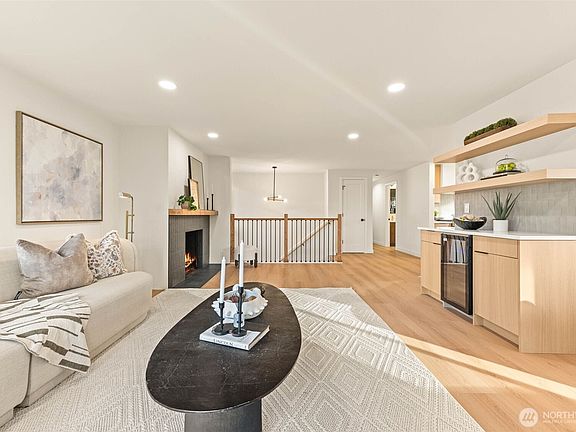 Framed by peek-a-boo views of the water and the Olympic Mountains, this beautifully remodeled Edmonds home is set within one of the area’s most established neighborhoods, just minutes from the heart of downtown. Filled with abundant natural light, the home has been thoughtfully reimagined and is truly turn-key, with permits in hand and finishes that strike a balance between modern design and timeless appeal. Large windows throughout create a bright, airy atmosphere, while the subtle coastal outlook provides a constant reminder of the home’s Pacific Northwest setting. At the center of the home, the designer kitchen is both striking and highly functional, anchored by an oversized island with generous seating- ideal for everyday living and effortless entertaining. The kitchen flows seamlessly into the main living space, where a wet bar just off the living room creates a natural gathering point for hosting and connection. Three bedrooms on the main level offer a rare and highly desirable floor plan, providing comfort, convenience, and ease of living. Downstairs, a private separate entrance leads to a secondary living room and fourth bedroom, creating flexible space well suited for guests, multi-generational living, or extended use. attached two-car garage is complemented by generous additional parking, offering endless opportunity for boat or RV storage—an exceptional feature this close to downtown Edmonds. Located within the award-winning Edmonds School District & free from HOA!